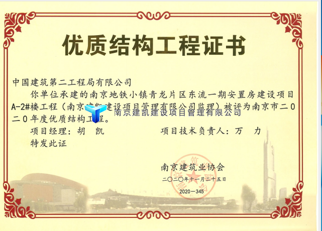 2021年榮獲優(yōu)質(zhì)結構項目—南京地鐵小鎮青龍片區東流一期安置房建設項目